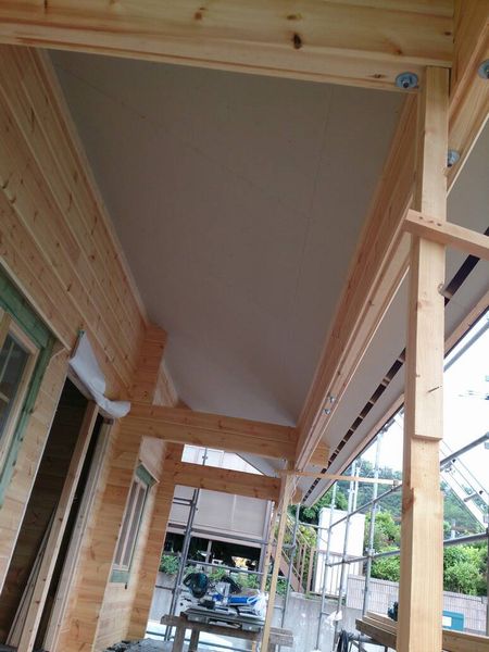 昨日三原工務店のみっちゃんから大磯町I邸様工事進行写真が送られてきました。 外部塗装も順調に進み軒裏が張り終わりました。 大磯町は準防火地区ですので軒裏に木材が使えないのでケイカル板にて施工しています。