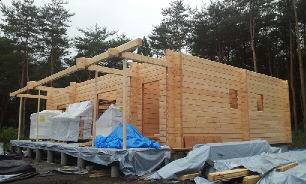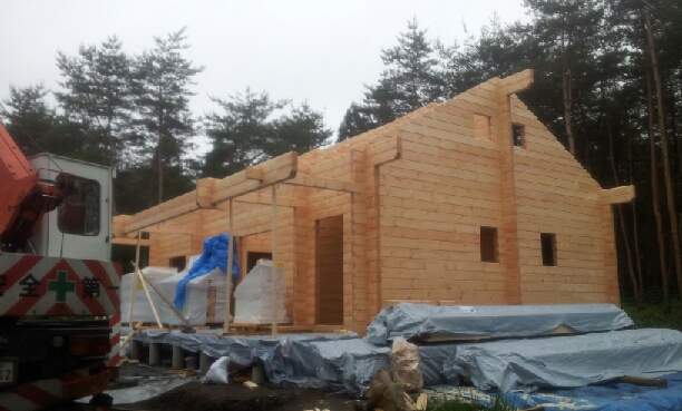 3時頃無事上棟となるログ組み完了です。明日は垂木かけ作業となります。安全第一頑張ります!