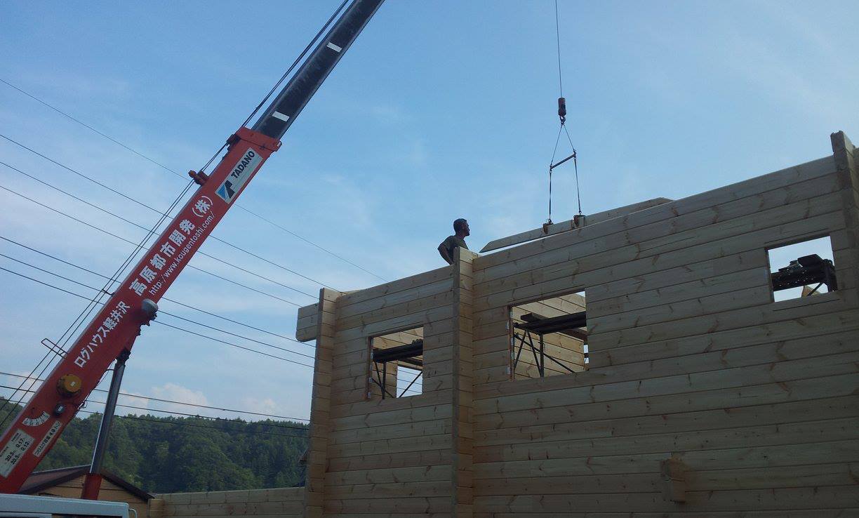 自宅ログハウス建て方工事4日目です。 本日17段目からスタートして32段まで積み上げることができました。 暑い中頑張ってくれた職人さんには本当に感謝です。
