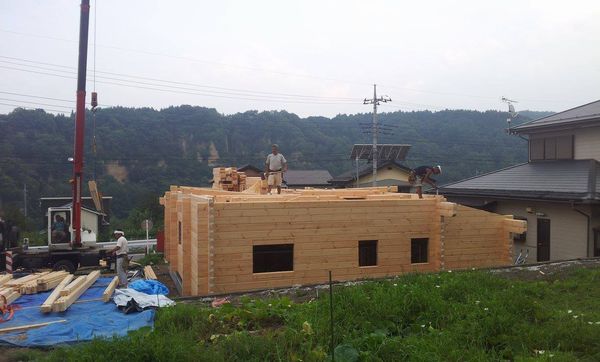 ブログ更新怠ってしまっていますが、自宅ログハウス新築工事建て方が6日火曜日から始まっています。 お隣の畑を借りれたので工事は難なく進んでいます。 昨日17段目まで積み上げることができました。 自宅は総二階ログ壁40段近いのでこれからもう一棟分の建て方が始まります。 安全第一頑張りますね!![]()