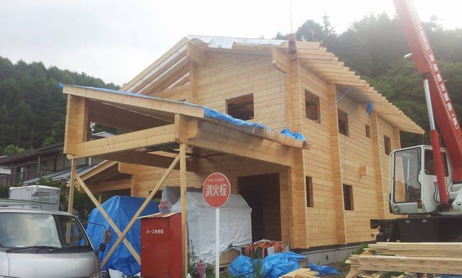 こんにちは野口 展孝です。 先週火曜日から建て方が始まった嬬恋村の野口邸、昨日で垂木かかり雨じまいのシート貼り終え、職人さんは盆休みとなりました。