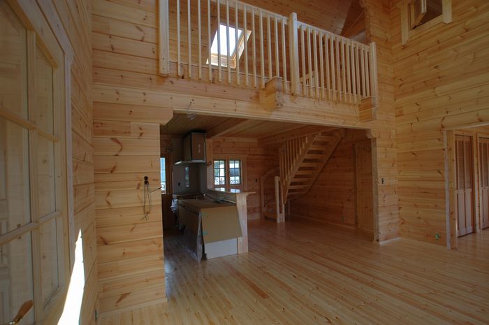 総2階ログなので迫力あります。 かなり大きく感じられますよ。![]()