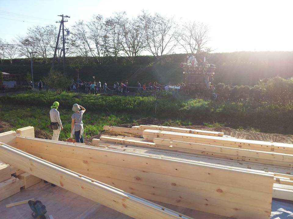 袋井市内では各地区でこの連休中お祭りが行われています。 現場前では立派な山車がとおり、仕事の一服に楽しく拝見させていただきました。 お祭りの様子をカメラでパシャリ! いいショットじゃないと思った方ログハウスバナーぽち宜しくお願いします!