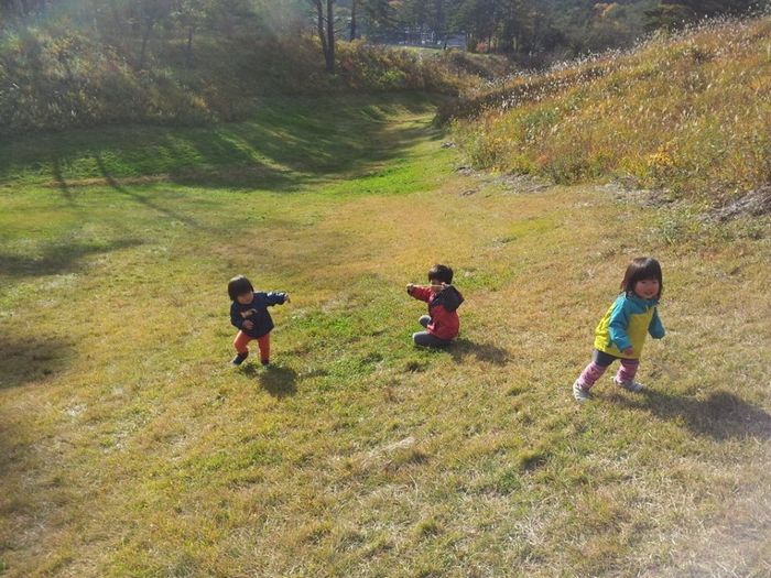 午後からはチビたちを連れて近くの浅間牧場に行ってきました。 標高1200mから1300mの東屋目指して4人でアタック。 途中根をあげるチビもいましたが無事東屋まで到着できました。 眺めは最高。
