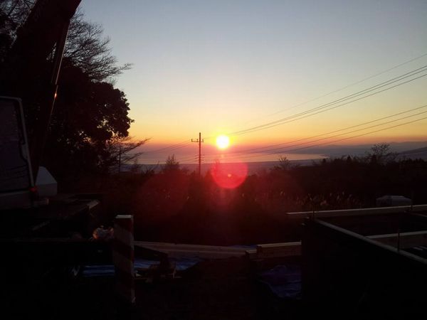 今回の現場のロケーションは最高。 テラス側には駿河湾。 夕日が生みに照らされ本当に綺麗です。 日が沈むと夜景も最高です。 また北側には富士山も綺麗にみえます。