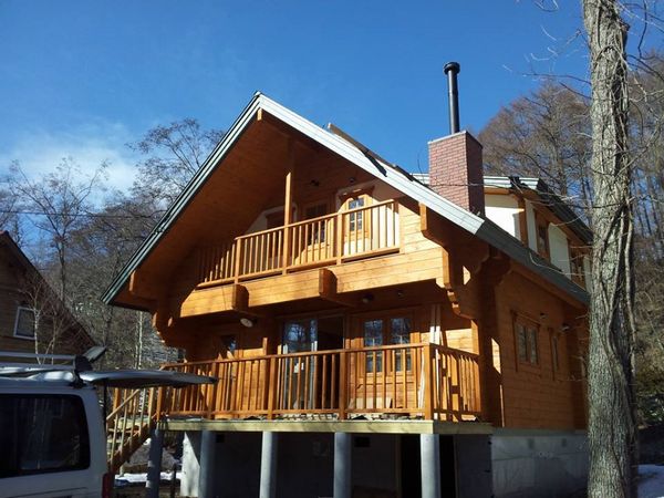 軽井沢人気スポットと近くでフィンランドログ、中国ログを建築中! 軽井沢寒いですが現場見学可能です。 是非お越し下さいね。