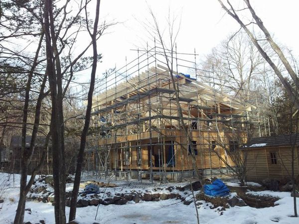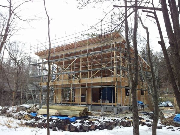 3. 軽井沢O邸様ログハウス新築工事! 野地板がかかりました。