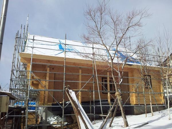 3. 軽井沢O邸様ログハウス新築工事二日目、中之条町S邸様造作工事進んでいます