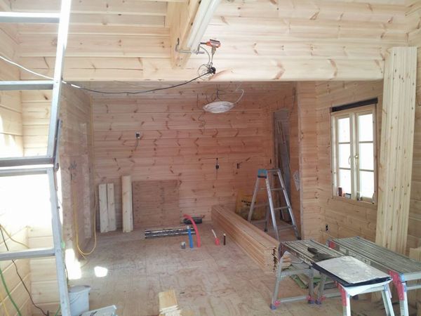 軽井沢O邸様ログハウス新築工事二日目、中之条町S邸様造作工事進んでいます