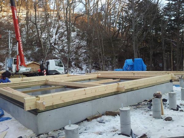 昨日は軽井沢O邸様ログハウス新築工事建て方2日目です。 土台から大引き工事に入り、基礎のアンカーボルトと固定するログ壁1.5段積み上げ基礎としっかり繋ぎました。 大引き下の束もたて現場が暗くなる6時まで職人さん頑張ってもらいました。 明日は根太工事をしてステージをつくりいよいよ本格的にログ壁を積み上げていきます。 現地には滝沢さんがログ壁90パーセント現地に運び入れました。