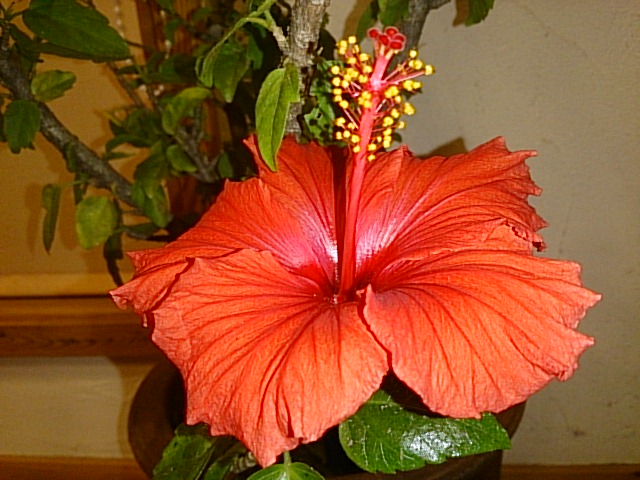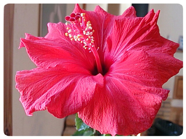 冬の期間は薪ストーブのおとなりさんのハイビスカスが咲きました。このハイビスカス、我が家に来て7年が経ちました。