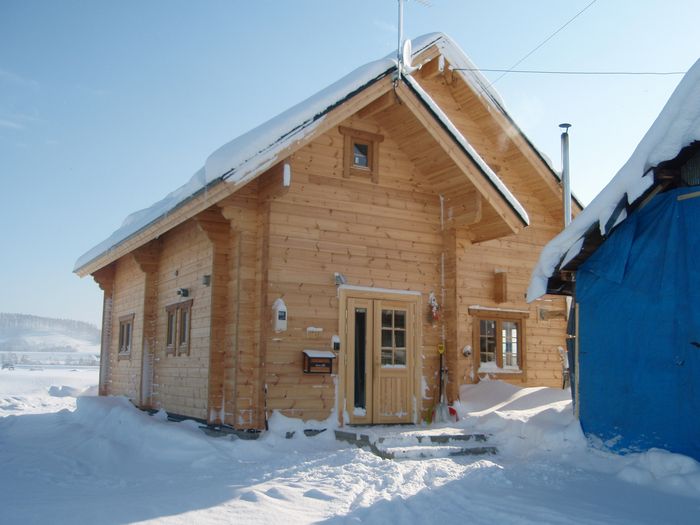 先日北海道S様からログハウスが完成したとメールありました。 S様邸は昨年9月12日にキットを納め3日間大工の山中さんと建てかたサポートさせていただいたお客様です。 3日間で荷下ろし、ログ壁10段ほど積み上げて群馬に戻ってきましたが、それからこつこつとS様とS様のお兄さんとでセルフビルドして昨年末完成したとのことです。 滞在中は手厚いおもてなしをしていただき思い出深い建て方現場でした。 S様宅でいただいた豚ジンギスカンは山中さんと舌鼓でしたね〜。