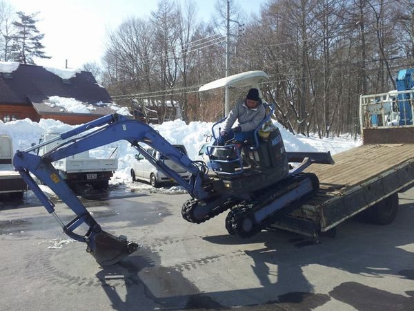 除雪作業の話といえば昨日友達の山﨑君が勤めている会社の除雪作業をするために弊社ユンボをレンタルしていきました。 山﨑君は薪ストーブ長野総商さんのスタッフ。 以前は建設会社で働いていたのでユンボ作業もお手のもの。 今年で6年目となる山崎君はいい仕事しますよ〜。 薪ストーブは長野総商、ハースストーンお勧めですよ。