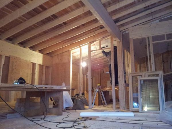 午後からは現場を弟に任せて私は近くのO邸様現場行ってきました。 職人さんは断熱材を充填する作業に入っていました。 外部も紙が貼られ大分形になってきていますね。