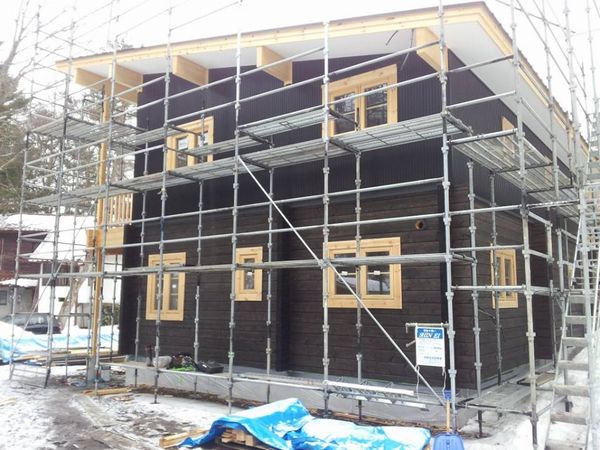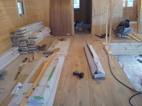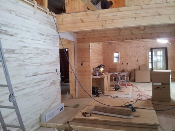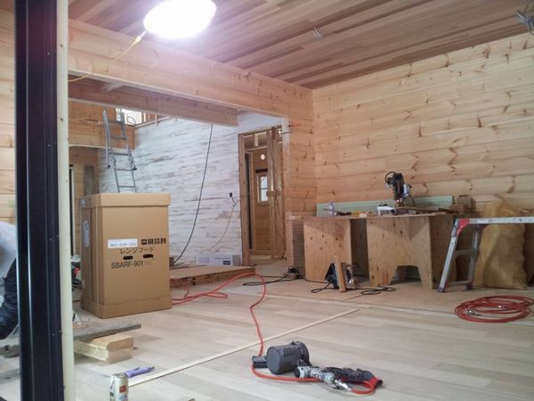 軽井沢O邸様は内部造作工事が進んでいます。 2F曲面フローリングも7割かた施工していました。