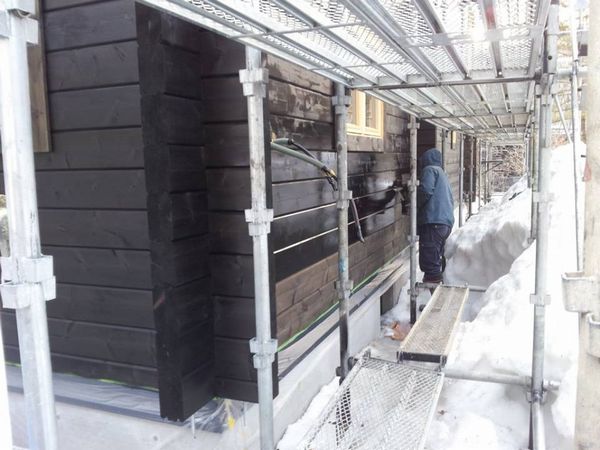 外観色は黒ベースで軽井沢に似合うカラーですね。 寒い中滝沢さん頑張ってくれています。