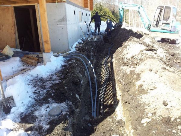 ユンボとブレーカー、そして100Vのピックを駆使して11頃掘り終えました。 明日の送電になんとか間に合いましたね。