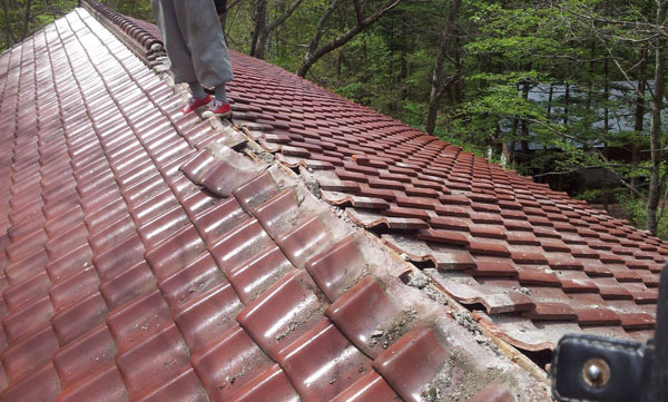 屋根が瓦なのでまずは瓦を撤去する作業から開始です。