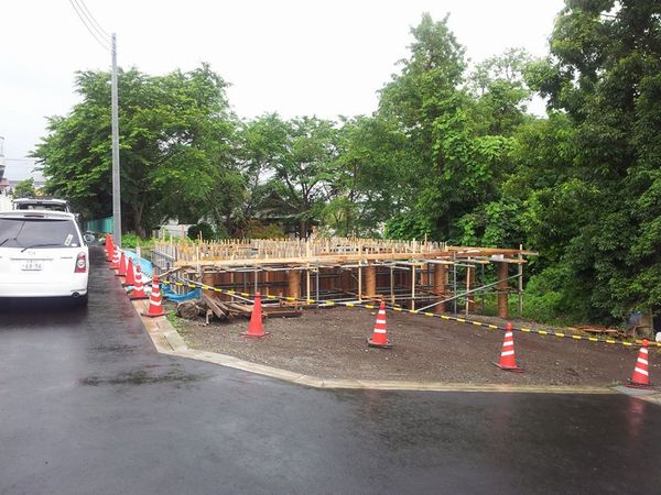現場は厚木市恩名の保育園の裏手にあります。 住宅仕様のログハウスですが御興味ある方是非お問い合わせ下さい。弊社ログ街中でも問題なく建築できますよ!