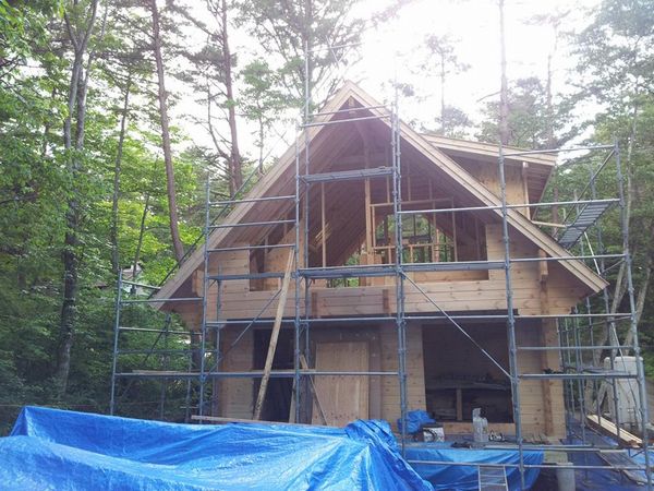 昨日は天気良かったですね。 天気がいい中昨日は山梨県富士桜高原別荘地内にて建築中のS邸様現場行ってきました。 早朝2時半に出発して5時半に現場につき造作に使う材料を下ろしました。