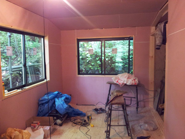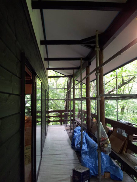 リフォーム現場も進んでいます。 外部塗装もログパネルに塗られいい感じです。