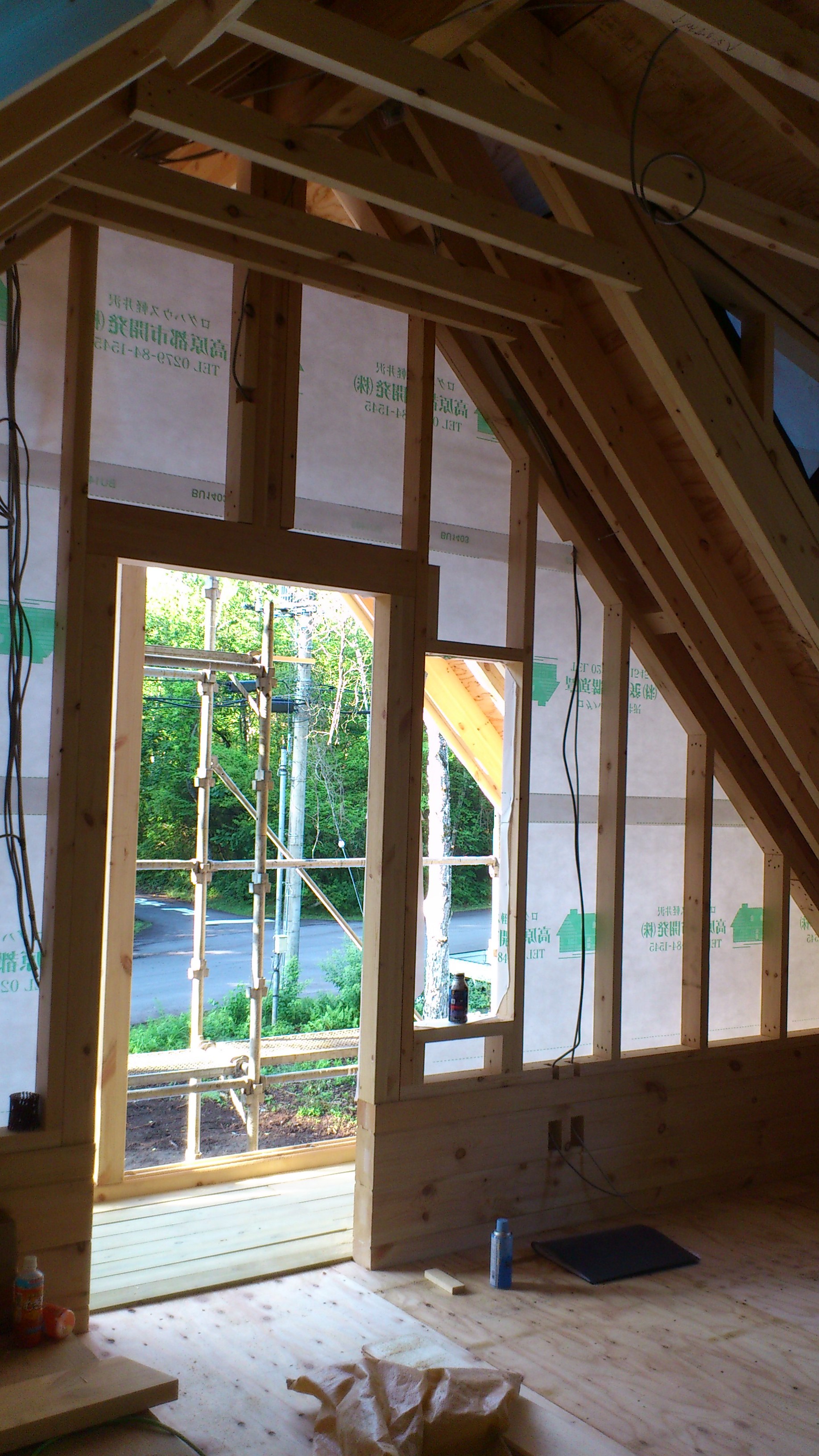 ドーマ無しでも十分な2階の空間が確保できています。事務所から近いので建物の工事中でも