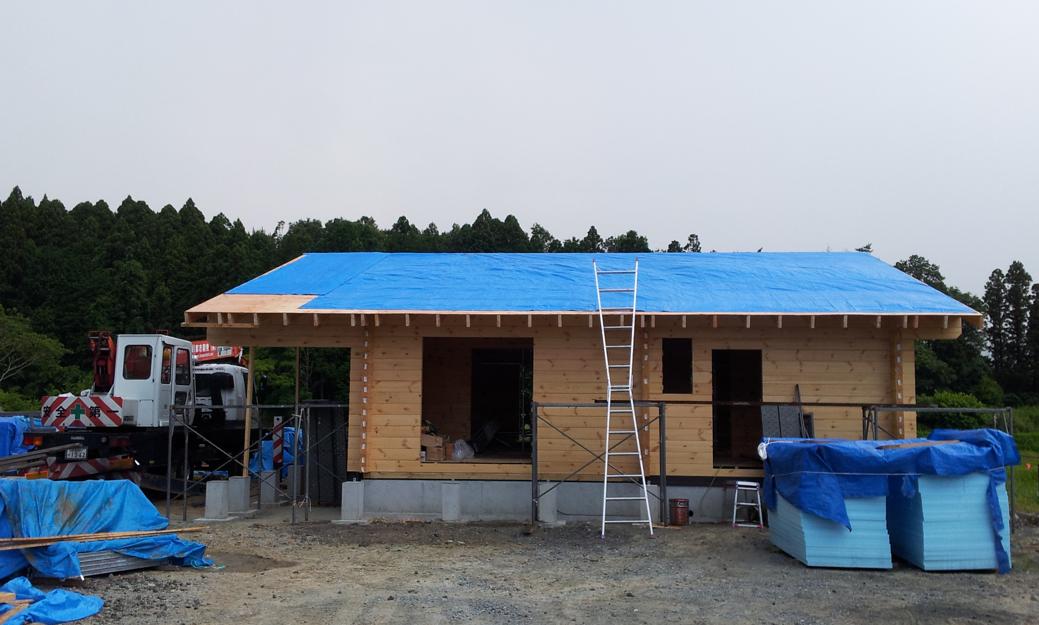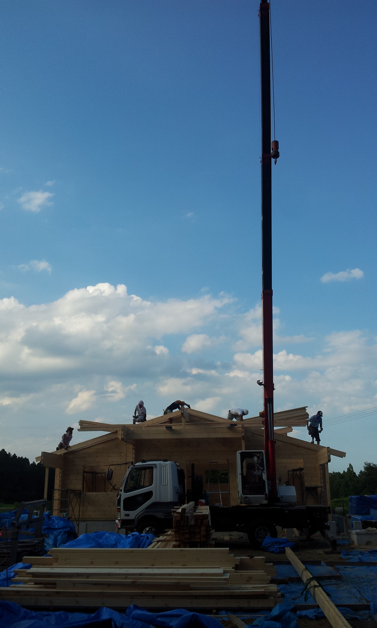 ビルドアップも大変だったと思うが、お蔭様で雨にあたることもなく無事に野地板まで張れて雨じまいが