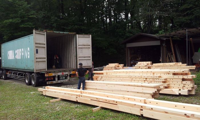 昨日は栃木県那須町にて中国ログキット納品作業に弟と滝沢さん、3人で朝3時半出発で行ってきました。 ログキットの用途はコテージ。 那須町のヒコヒココテージに建築予定です。 コンテナの中には12坪のコテージ2棟分。 コンテナを開けると「いや〜多い」 これは時間かかりそうですね〜。