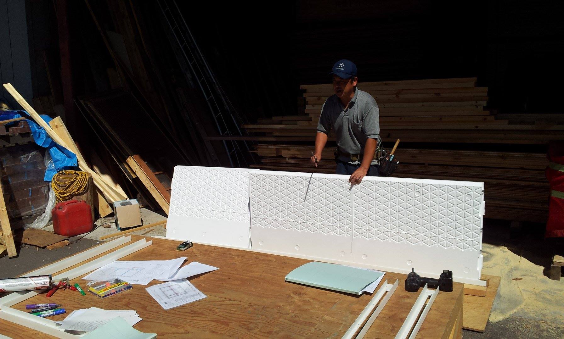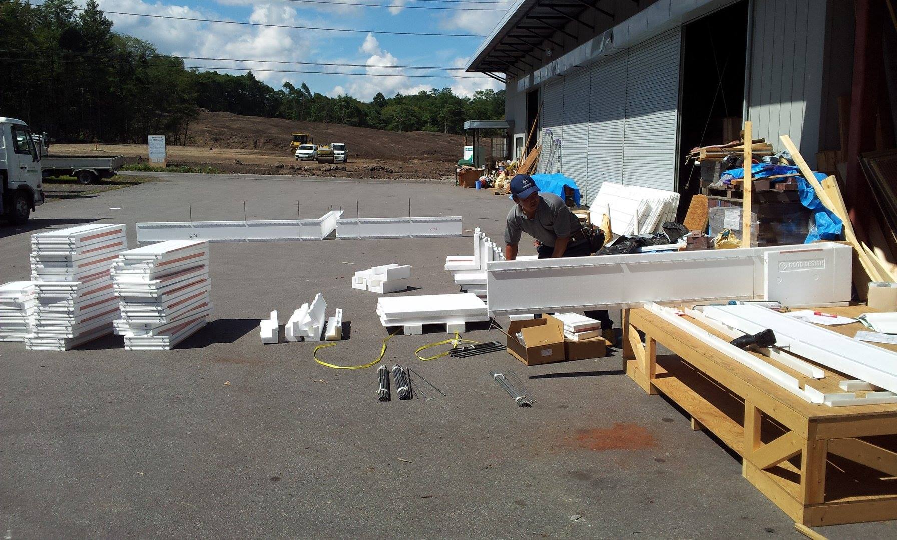 昨日はいい天気の中、タイトモールド工法の基礎型枠を加工しました。 来月に千葉県佐倉市にて新築するK邸様ログハウスの基礎工事に使用します。