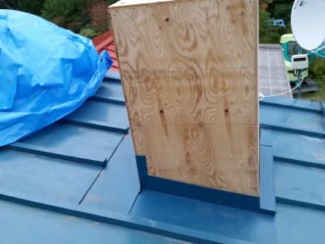 どーもー!マーモンでーす!心配事がありました。台風も近づいてきました。天気も悪くなってきています。昨日、マーモンはリフォーム中の屋根に穴を開けてしまいました。室内はボードも貼られています。雨仕舞いは、完璧にしたつもり((>_<“)でも何か心配!どーしよー?かなー?なんて思ってたいたら来てくれました!頼りになる職人!屋根屋さんの西山親方!マーモンの心をわしづかみにするナイスな職人さんです。テキパキと煙突周りの板金を仕上げ完璧な仕事をしてくれました。これで雨仕舞いは、完璧です。雨が漏れてきたら親方の責任にできるのでマーモンの心配事が消えましたよー(^з^)-☆なーんてね!
