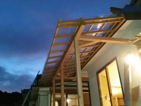 そして午後からは、只今進行中のウッドデッキのタルキの塗装!波板を貼るので先に塗装をしなければなりません。ハケを手にタルキを塗っていきます。細かい所が多くてまたまた肉汁!\(^-^)/