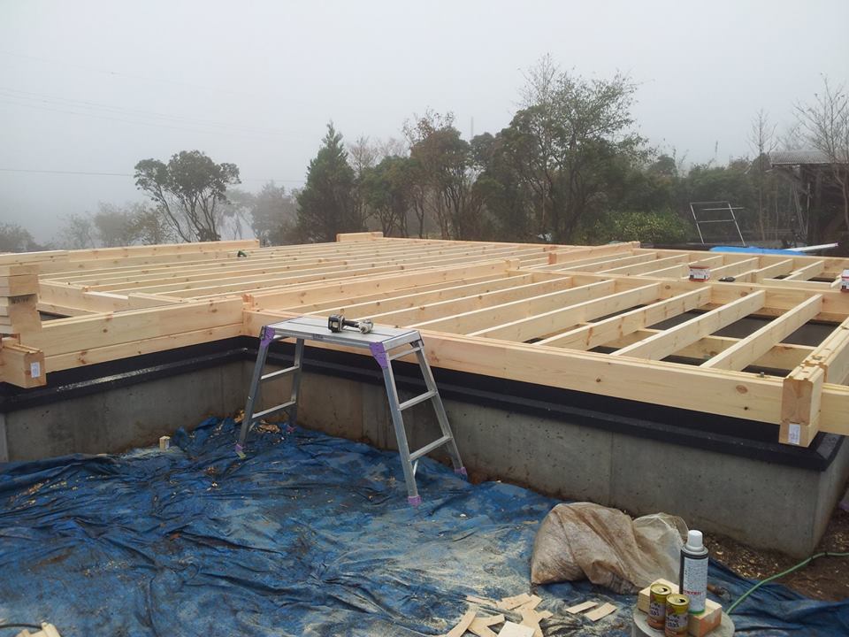 午前中は曇りで現場は霧がまっているような感じです。 風は強いしかなり冷え込みましたね。 午後3時ぐらいから晴れ間がでて富士山や駿河湾を眺められるようになりました。 1年前もH様邸にて御世話になりましたが芦ノ湖高原別荘地からの眺めは最高ですね。 明日は天気よくなりそうなので気持ちよく作業ができそうです。