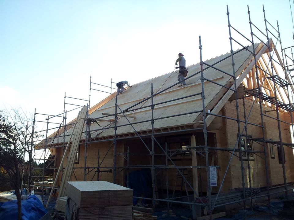 昨日朝一番から足場をかけ野地板を施工する段取りとなりました。
