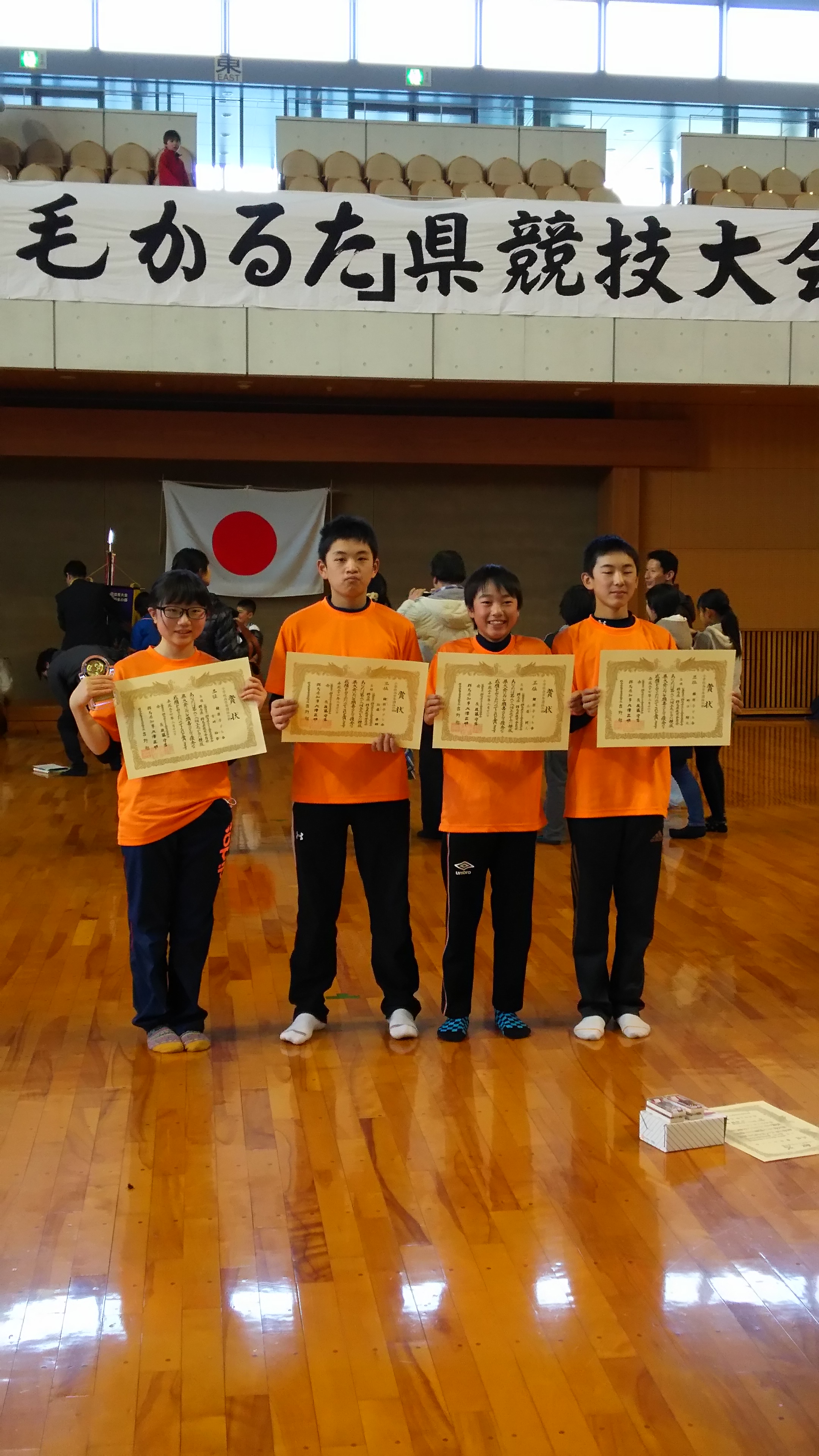 かるた大会の3位表彰式 右端「孫」