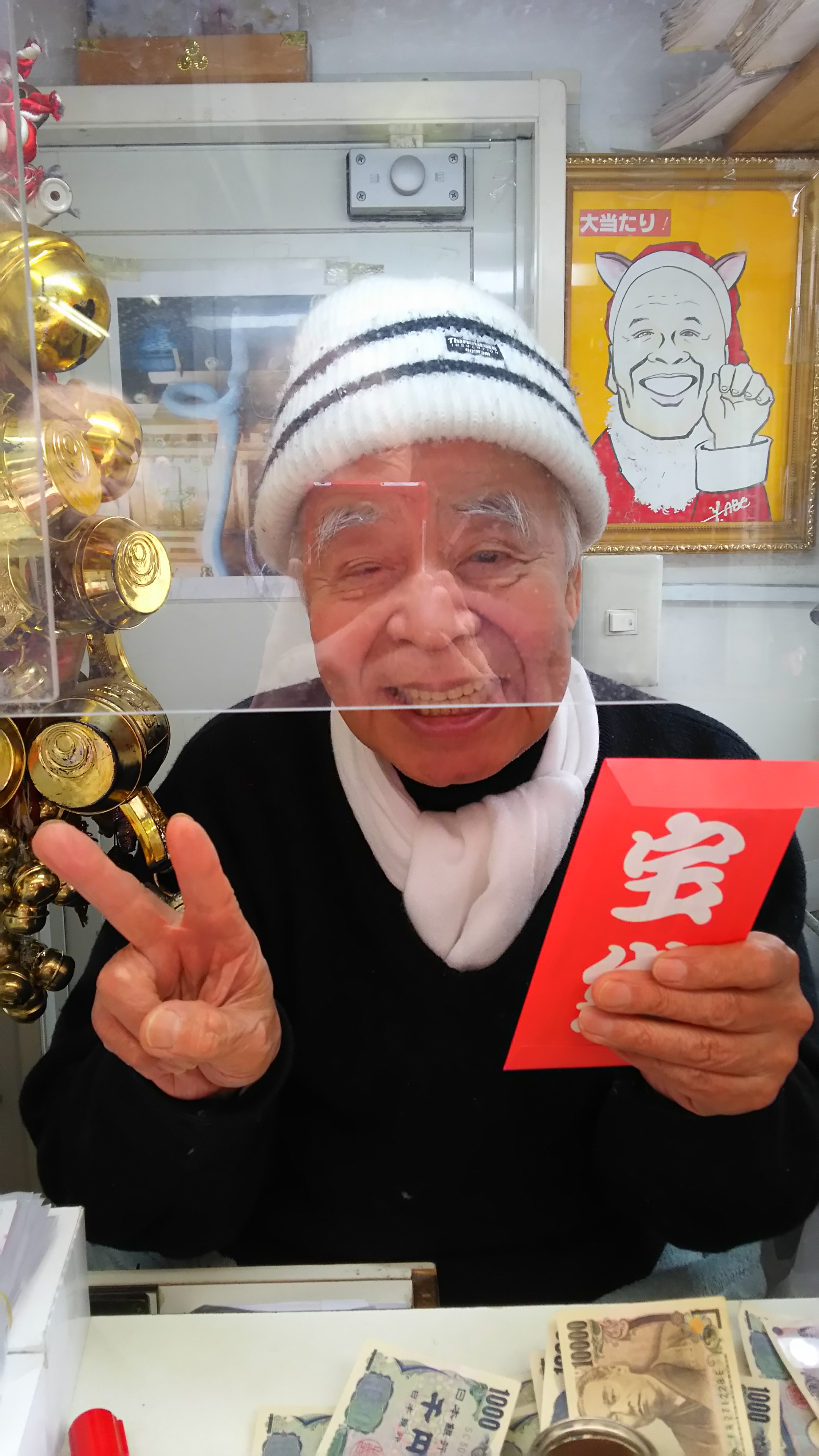 浅草橋駅前の宝くじ売り場のおじいさん グリーンジャンボ当てて、チーム高原ハワイ旅行