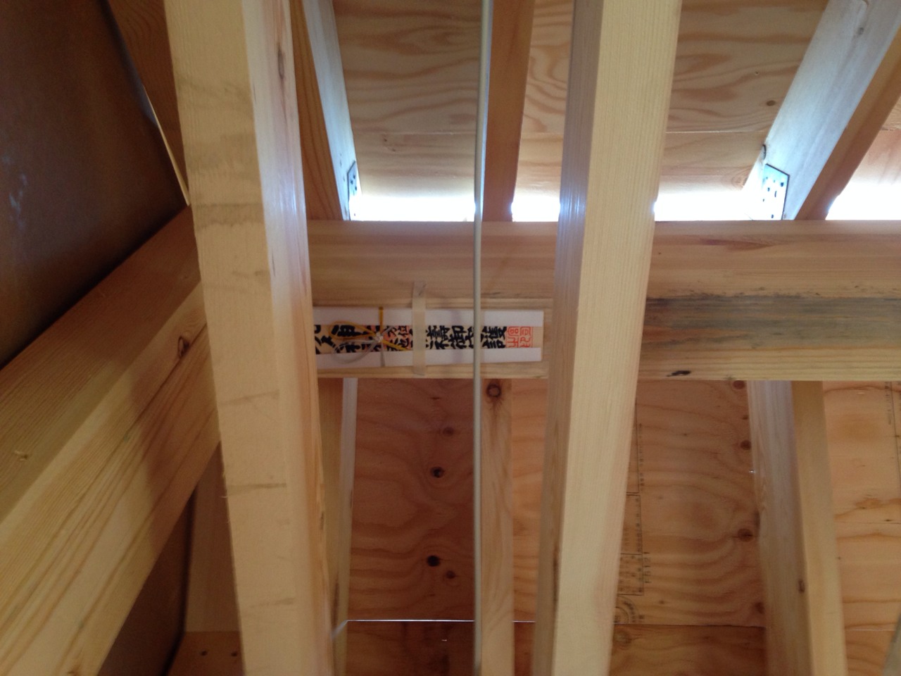 心配なくなり、内装工事も順調に進んでいる様子です。地鎮祭に神主さんからいただいた上棟のお札も