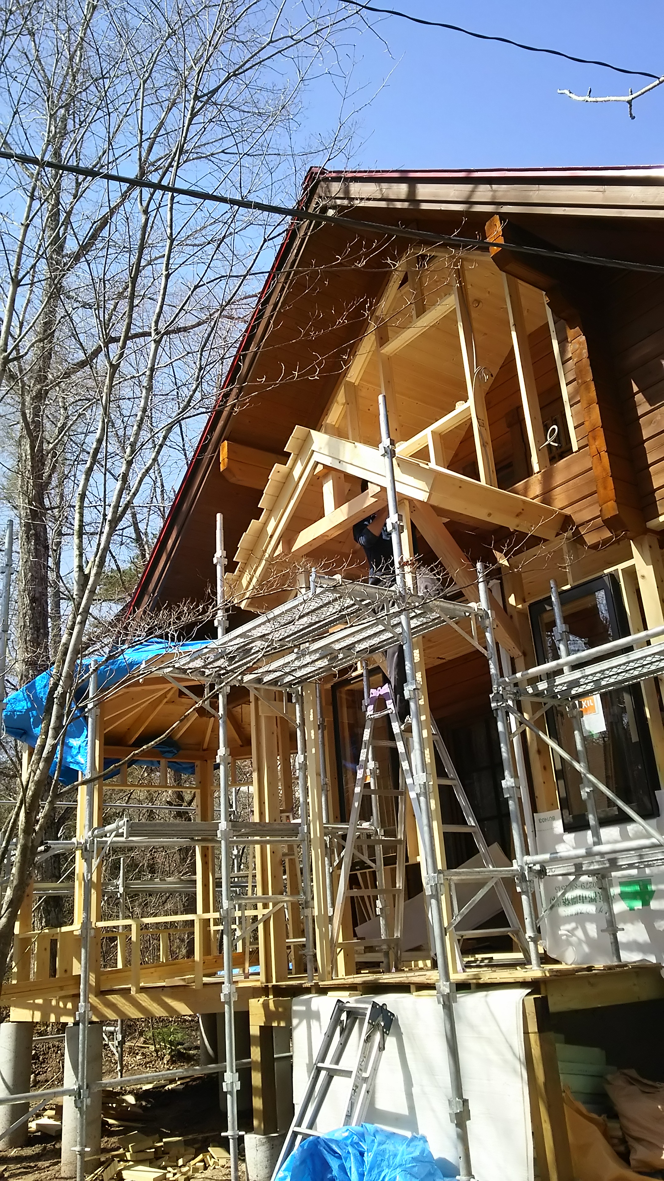 楽しみです。八角形の天井を納めるのにログの梁が、邪魔をしたりで納めるのに頭が痛いです。