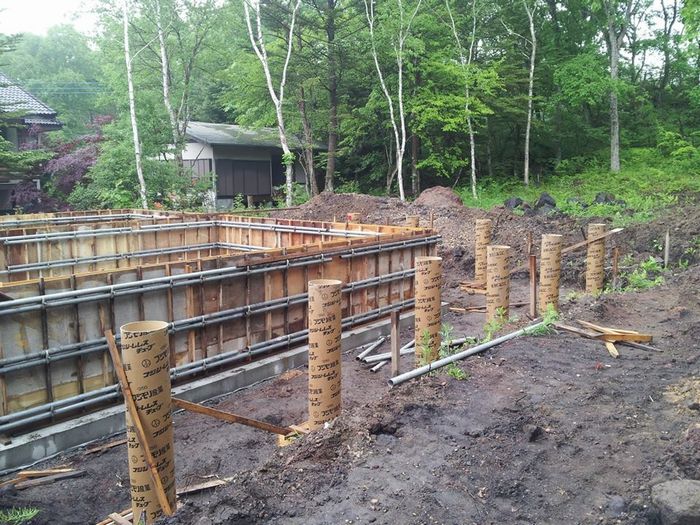 土曜日にポンプ屋さんと生コンを手配して打設作業の段取りもできました。 月曜日から始めた型枠作業。3日でやりとげた二人に感謝です。