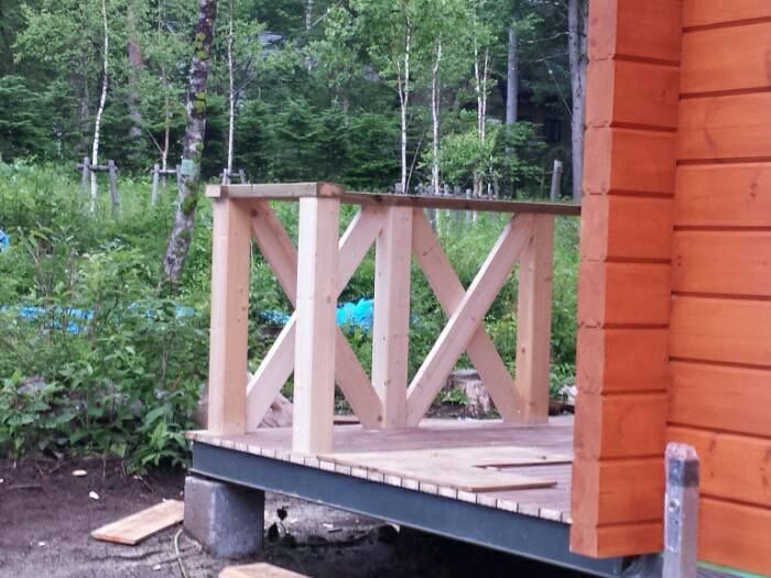 鳴沢村丸紅別荘地T邸様では造作工事も終盤となってきました。 外部デッキ工事も進めております。