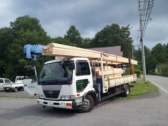私は今日からT邸様の仕上げ工事に行くので材料をすべて搬入しようと思い、かなり頑張りましたよ! 写真のような長尺材もこのとおりうまく積み込みました。 おかげですべての材料搬入が完了! あとは職人さんたちにお任せです!