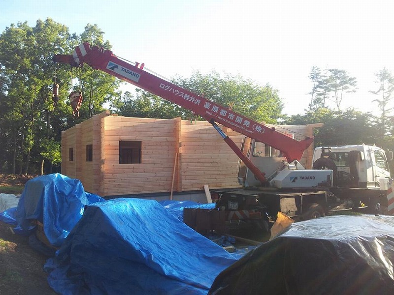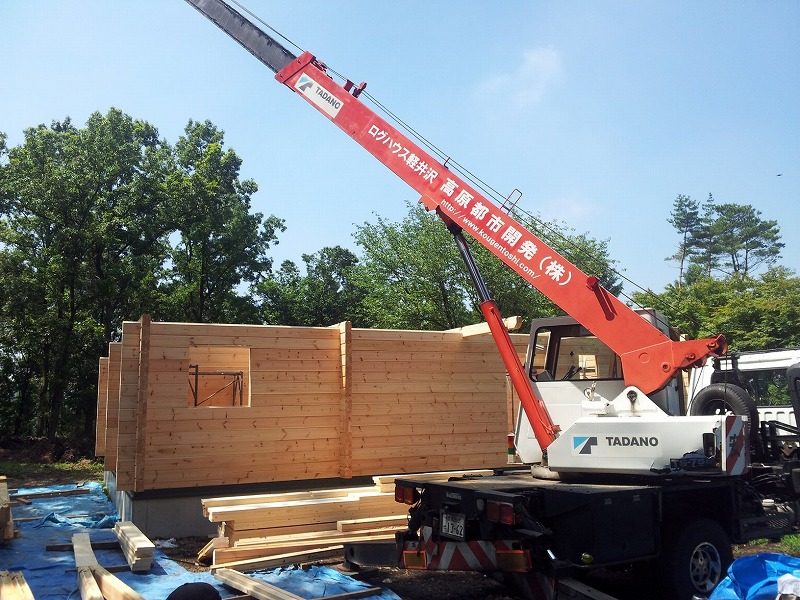 I邸様は2Fもログ壁仕様のフルログ仕様です。 棟までは40段近いですが効率よく作業進めたいと思います。