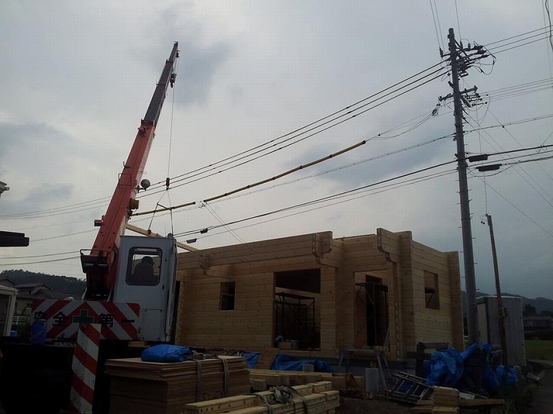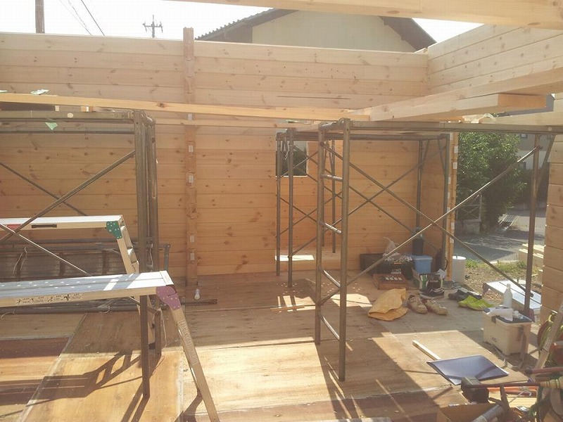 4時ごろ2Fステージが完了してログ積みは第二ステージへ! 私は打ち合わせのため4時ごろ帰還しましたが20段ぐらいまで積み上げられていると思います。