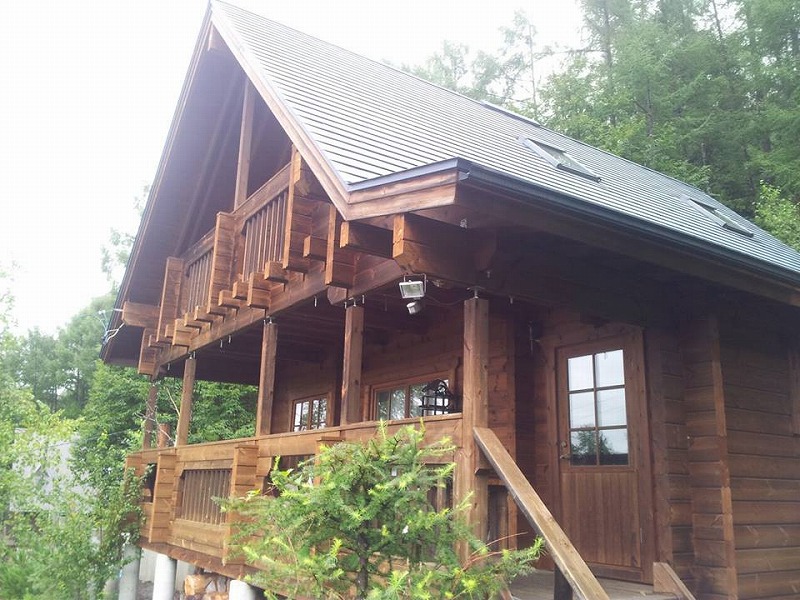 ログハウスを検討し始めて只今各メーカーさんをいろいろみてまわっているとの事です。 近くの実際たてさせていただいたログハウス2件みていただきましたよ。