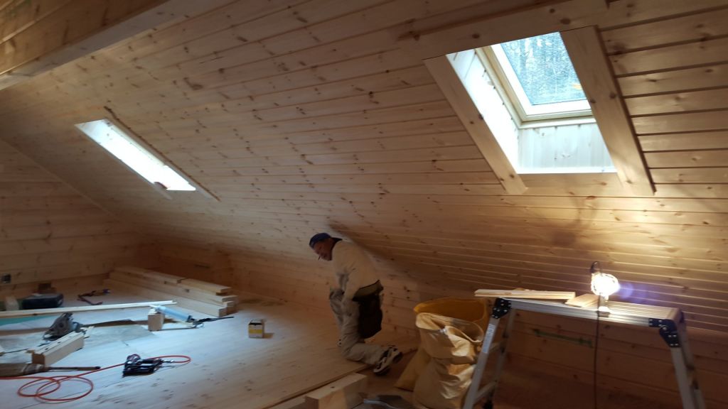 軽井沢O邸様ではタダオ大工さんが床貼り作業です。 来月完成むけて頑張ってもらっています!