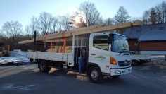 私はこんぺーさんがK邸様作業をこなしているので、運搬仕事をこなしました。 今年はずっと中作業が多かったので今年初の現場仕事になりましたよ!! コンペーさんが来る前はほとんどこなしていたので久々運搬作業でしたが楽しく作業できました! 10mちょいの材料もなんのその! 写真のように運搬して、ログ材は90パーセント現場搬入できました。 明日はこんぺーさんにお願いするとしますか!! 天気が心配ですが来週中にはログを積み上げ2Fの段取りに入れると思います。