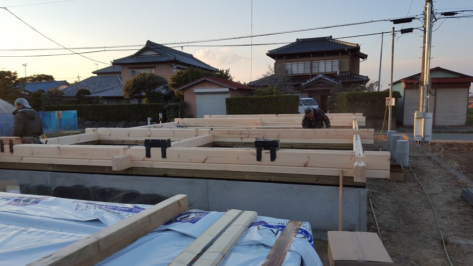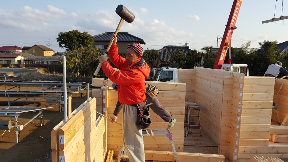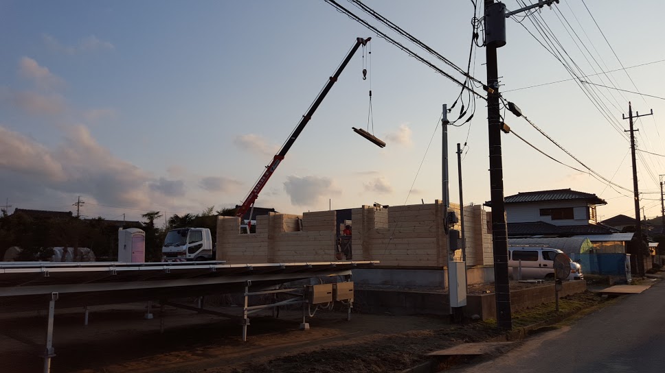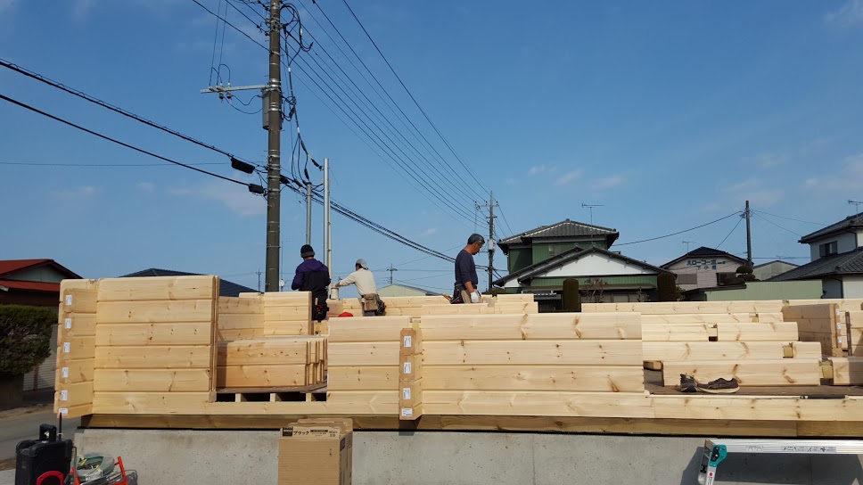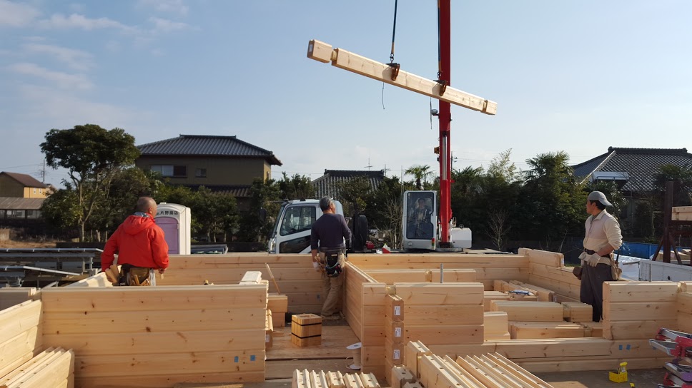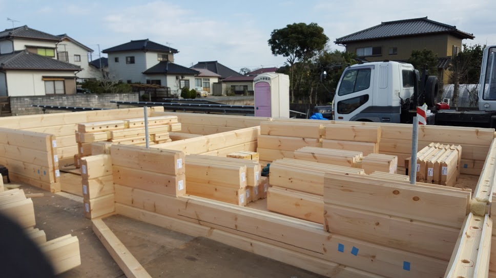 おはようございます。 野口展孝です。 千葉県香取市までM邸様ログハウス建て方工事進めています。 1日目は朝雪がちらつき不安な天気でしたが、2日目、3日目はいい天気で工事を順調に進めております。