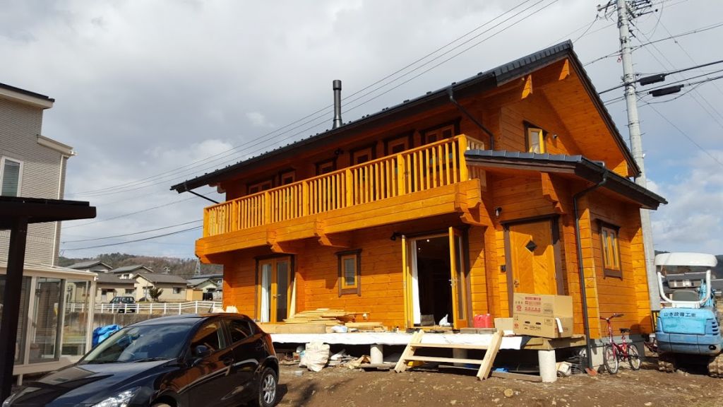 M様邸は弊社工事はログキット+ログ建て方+基礎工事+給排水+足場工事+電気工事の工事をさせていただきました。 残りの工事はM様のセルフ+ご自身で手配して工事を進めさせていただいた物件です。