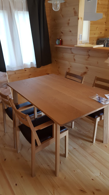 M様お仕事の関係で昨年の完成予定が昨日までずれ込んでしまったのですが、無事引っ越しとなりましたよ。 地元のSTANDARD STAYLEさんからダイニングテーブルが搬入され設置されました。奥様のチョイスですが格好いいですね!! ログの空間にマッチしております。