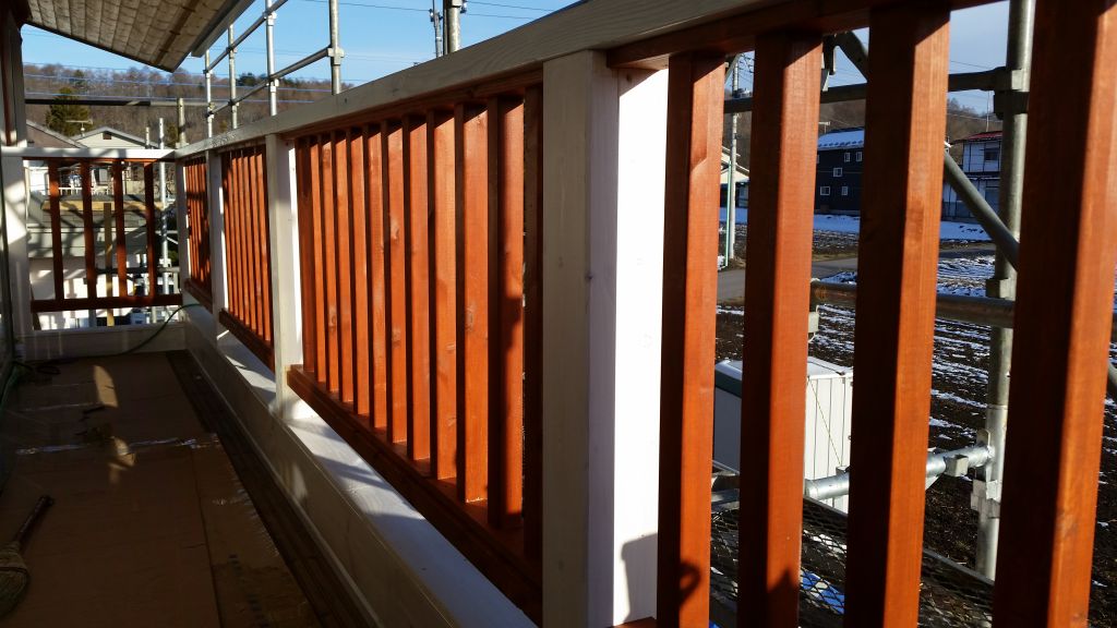 • 今日は、2階のテラスの手摺を作ってみました。色はどうする?とY先輩に尋ねると、おまかせ!という返事だったので、マーモンのセンスで塗ってみました。マーモンのイメージはおしゃれカフェ風?ベルメゾンに出てそうな女子受けしそうな感じで塗ってみました。個人の趣味ですが、いい感じに仕上がりましたよ。Y先輩もいいね!👍といってくれたのでこんな感じでいってみようと思います。(>_<“)それでは明日もまだ花粉症になってない自分に感謝して元気にがんばりたいと思います。マーモンでした。😆👌❤20160316_164430