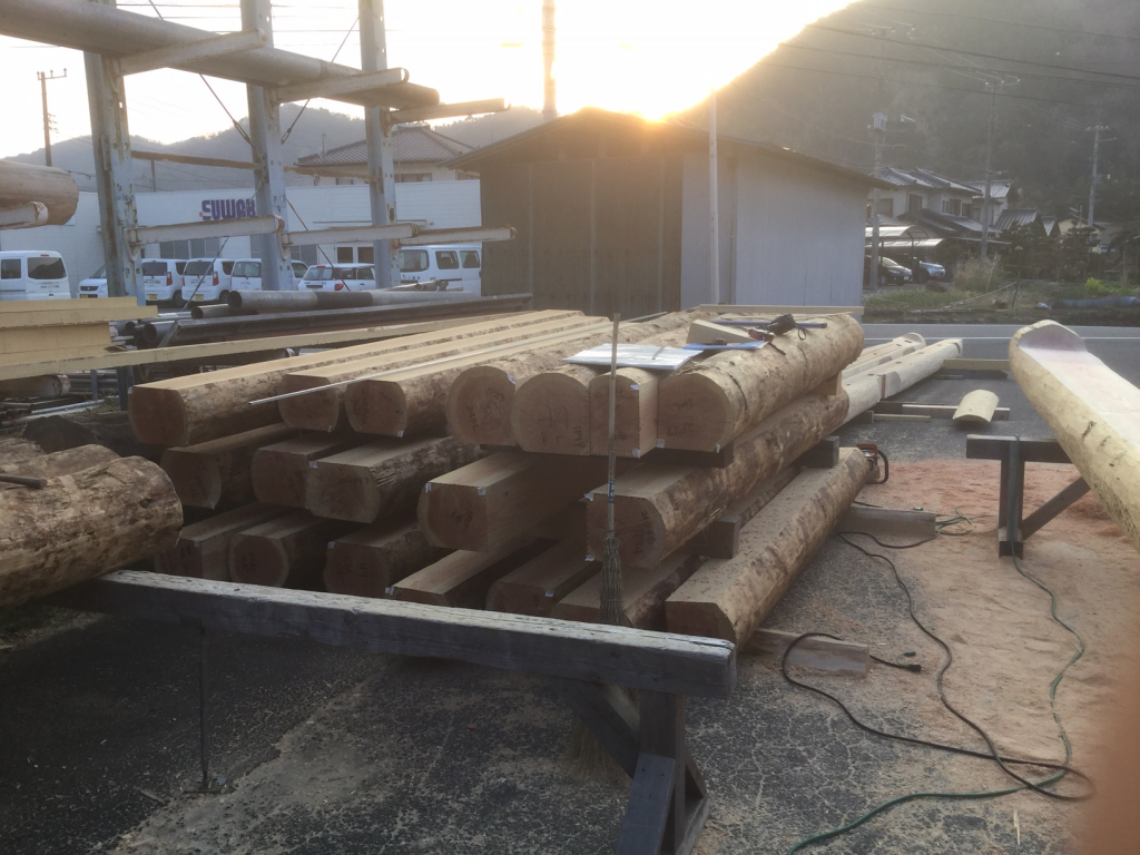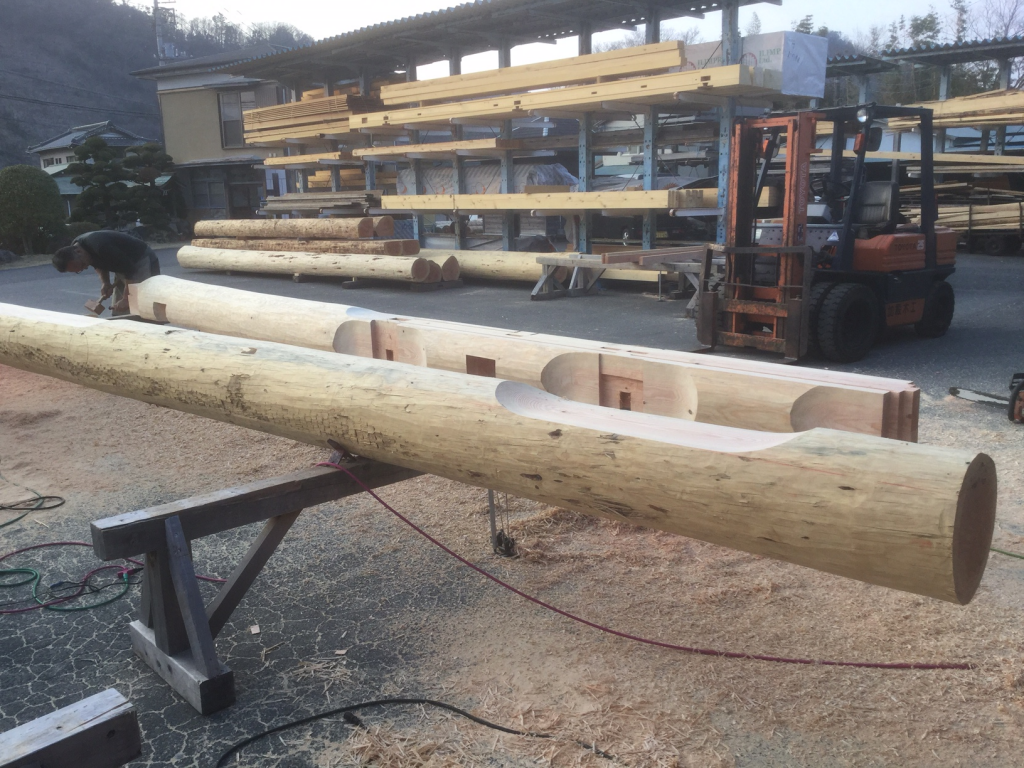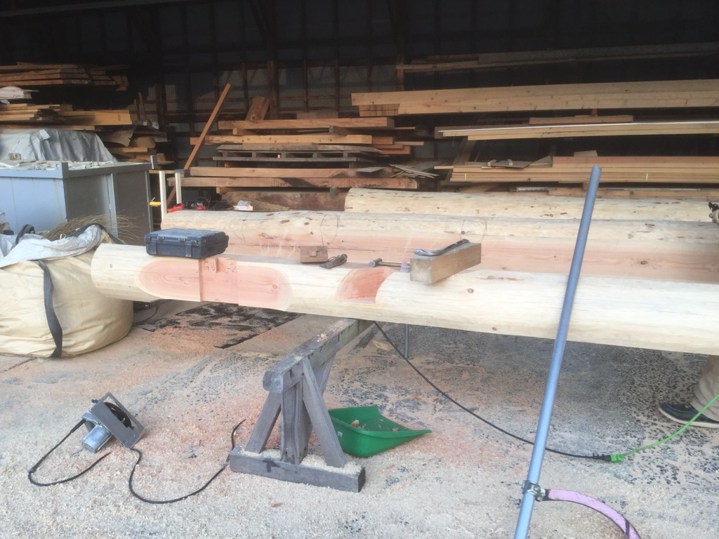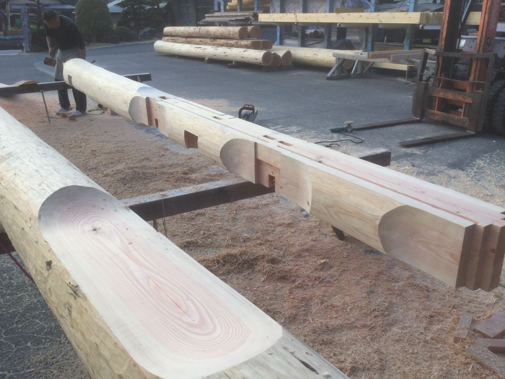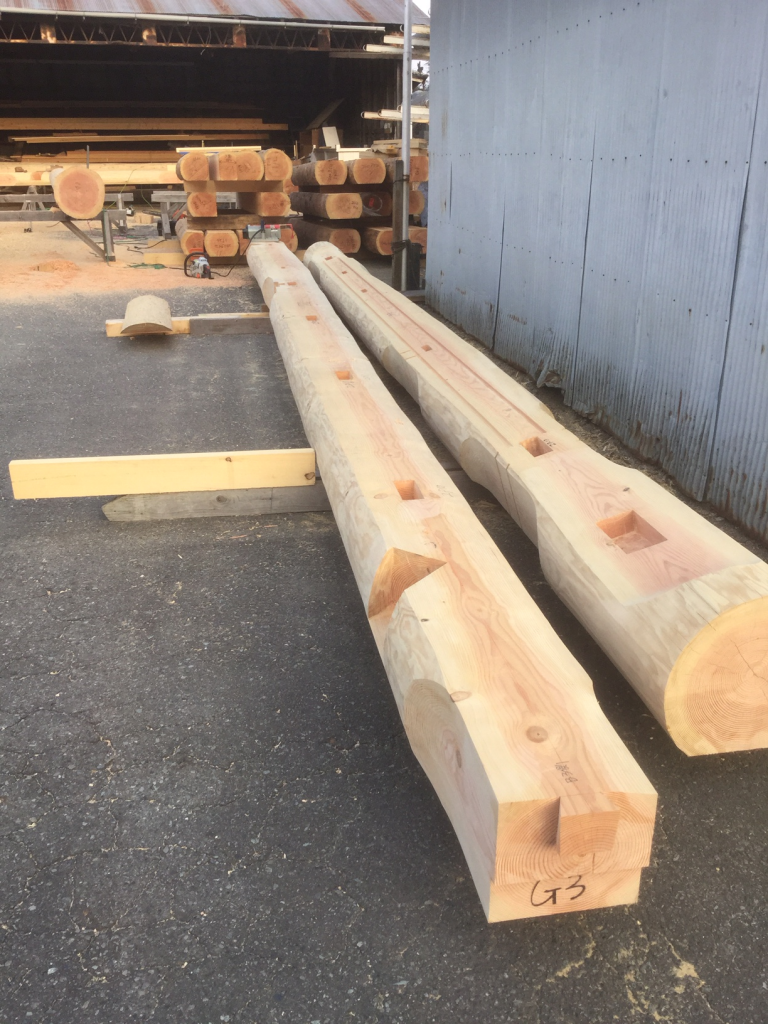 昨日軽井沢にて建築予定のY邸様ポスト&ビーム刻みの写真が加工をお願いしている伊豆の業者さんから送られてきました。 構造はダグラスファーにて刻んでおります。 平均口径280mmのなので迫力ありますね~。 職人さんの腕が光ります。